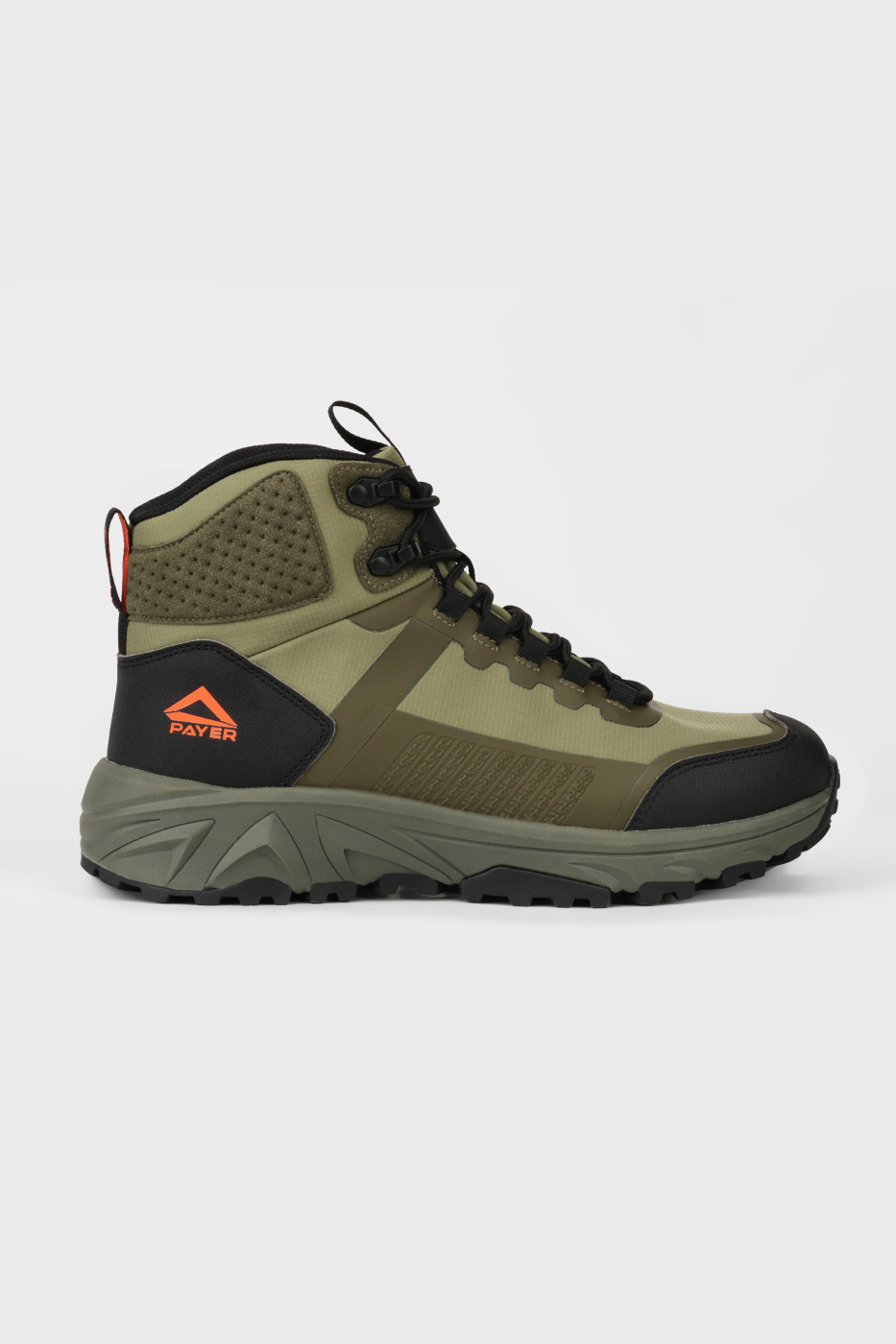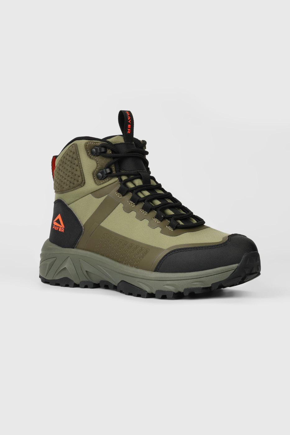 • мембранный чулок"    "Треккинговые ботинки PAYER Терра — это надежный выбор для активных путешественников, которые ценят комфорт и защиту. Верх из прочного нейлона с влагозащитной пропиткой обеспечивает долговечность и защиту от внешних воздействий. Удобная система шнуровки с крючками-зацепами в верхней части позволяет быстро и легко регулировать посадку. Шнурки водоталкивающие, содержат  мультифиламентную нить, не растягиваются, что гарантирует долговечность.